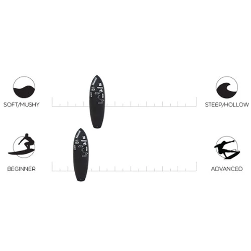 M/SF/T ‘SOFT WORKS’ Construction ~ premium, performance “soft” boards. Constructed from hand finished EPS blanks, glassed in EPOXY resin with 2 x layers of 6oz fibreglass on the deck, and 1 x layer of 6oz fibreglass on the bottom. Reinforced with a vertical fiberglass flex column down the centre of the board, then moulded in a high density IXPE foam deck + HDPE slick bottom.