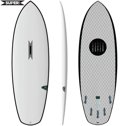 Construction: Superflex :Game Changing Feel, Developed by Superbrand: Instead of relying on a wood stringer, SUPERflex uses a lively, medium density, stringer-less EPS core. Wrapping this: 4 different types of reinforcements going in 6 different directions so that all the flex and strength is engineered into the surface of the board. The result is a consistent feel tip to tail, rail to rail and allows the board to flex naturally with the contours of the wave and in response to applied pressure from the surfer, all while creating a spring back feeling when coming out of turns. SUPERflex is a standard upgrade option on the FLING collection and is available for custom order on all other models.